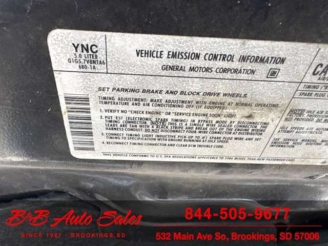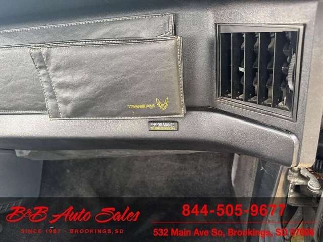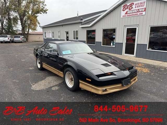 *5.0 Tuned Port V8*One Family Owned*T-Tops*Automatic*60,000 low miles MECHANICAL- This Firebird has been thru our inspection and we replaced the blower motor and converted AC to R134. EXTERIOR- The body is in great shape. It has had a repaint at one time an a nice job. It has a good shine to it with no rust issues. See the video for an up close inspection. Text Dirk at 605-695-7391 for running and driving video`sINTERIOR- The interior is in good shape with no issues.DIRK`S COMMENTS- With 38 years of experience I will give you my opinion of the Firebird. It is a cool car and being a 1 family owned car from Huron it`s whole life has some cool history. A great color combination and you can`t beat a black T/A for looks. UNDERNEATH- The underneath is solid, there is some surface rust from being in storage. History- A car from Huron .SD and one family owned. TEST DRIVE- We personally test drive our vehicles so we know what they drive like. I have drove this one 40 miles and it drives good.Located at 324 W Main White,SD 57276BUY WITH CONFIDENCE as this 1986 Pontiac Firebird has gone thru inspection and test drive. We personally work and drive these ourselves so can answer any questions you may have. We show you any issues with over 100 pictures and videos of a walk around, running and driving.VALUE- We price our vehicles to market value and try to be one of the best prices of vehicles in comparable condition. Our goal is to give you a good buy on a vehicle you are going to have fun with and enjoy. We do have a document fee but only $50 which is lower than most other dealers.LIKE IT OR RETURN IT- As being in business for 38 years we do not want to sell anybody a vehicle they do not want. As many of our vehicles are sold site unseen we will take the vehicle back and give a refund minus shipping and a restocking fee. You are responsible for the shipping both ways and a $1000 restocking fee. You have 3 days to notify us you are not happy with the vehicle and we will start the return process. Ask for more details.VIDEOS- Call, text or email for videos of driving the vehicle and of the engine running and accessories working. Text Dirk at 605-695-7391. Click here to apply for financing: Credit App Call or text Dirk at 605-695-7391 or Darren 605-695-9555 with any questions. B and B Auto Sales, 324 W Main White,SD 57276