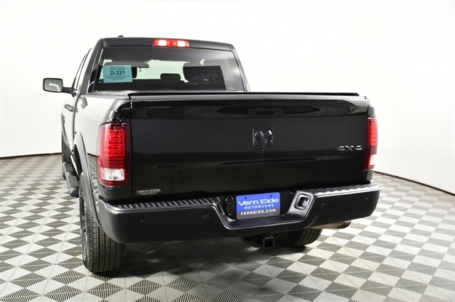 | QUICK ORDER PACKAGE 29F WARLOCK -inc: Engine: 3.6L V6 24V VVT Transmission: 8-Speed Automatic (850RE) Black Powder Coated Rear Bumper Black RAM Head Tailgate Badge 4x4 Flat Black Badge B-Pillar Black Out Semi-Gloss Black Hub Bi-Function Halogen Projector Headlamps Raised Ride Height Rear Extra HD Shock Absorbers Sport Tail Lamps Black Exterior Truck Badging Black Powder Coated Front Bumper Warlock Black Grille w/RAM Lettering Black Headlamp Filler Panel Front Wheel Well Liners Warlock Interior Accents Goodyear Brand Tires Black Wheel Flares | DIAMOND BLACK CRYSTAL PEARLCOAT |