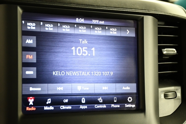 Check out the rest of the great features on this car! Big Horn Level 2 Equipment Group (115V Auxiliary Power Outlet, 115V Auxiliary Rear Power Outlet, 400W Inverter, Air Conditioning ATC w/Dual Zone Control, Auto-Dimming Exterior Driver Mirror, Auto-Dimming Rear-View Mirror, Black Premium Power Mirrors, Class IV Receiver Hitch, Cluster 7.0 TFT Color Display, Exterior Mirrors Courtesy Lamps, Exterior Mirrors w/Supplemental Signals, Foam Bottle Insert (Door Trim Panel), For More Info, Call 800-643-2112, Glove Box Lamp, Heated Front Seats, Heated Steering Wheel, Media Hub w/2 Charge Only USBs, ParkSense Front/Rear Park Assist w/Stop, Power 4-Way Driver Lumbar Adjust, Power 8-Way Driver Seat, Power Adjustable Pedals, Power-Folding Mirrors, Rear Dome w/On/Off Switch Lamp, Rear Power Sliding Window, Rear Window Defroster, Security Alarm, SiriusXM Radio Service, Sun Visors w/Illuminated Vanity Mirrors, and Universal Garage Door Opener), Quick Order Package 25Z Big Horn (Big Horn Badge), Sport Appearance Package (3 Rear Seat Head Restraints, 4 Way Front Headrests, Black Interior Accents, Body Color Exterior Mirrors, Body Color Front Bumper, Body Color Premium Power Mirrors, Body Color Rear Bumper w/Step Pads, Bucket Seats, Center Console Parts Module, Deluxe Cloth Bucket Seats, Exterior Mirrors w/Memory, Front Seat Back Map Pockets, Full Length Floor Console, Manual Adjust 4-Way Front Passenger Seat, Rear 60/40 Folding Seat, and Sport Decal), 3.21 Rear Axle Ratio, 4-Wheel Disc Brakes, 40/20/40 Split Bench Seat, 48V Belt Starter Generator, 6 Speakers, ABS brakes, Air Conditioning, Alloy wheels, AM/FM radio, Black Exterior Mirrors, Brake assist, Bumpers: chrome, Cloth Bench Seat, Compass, Delay-off headlights, Driver door bin, Dual front impact airbags, Dual front side impact airbags, Electronic Stability Control, Front anti-roll bar, Front Center Armrest w/Storage, Front fog lights, Front License Plate Bracket, Front reading lights, Front wheel independent suspension, Fully automatic headlights, GPS Antenna Input, Heated door mirrors, Illuminated entry, Integrated Voice Command w/Bluetooth, Leather steering wheel, Low tire pressure warning, MOPAR Front & Rear Rubber Floor Mats, Occupant sensing airbag, Outside temperature display, Overhead airbag, Overhead console, Panic alarm, ParkView Rear Back-Up Camera, Passenger door bin, Passenger vanity mirror, Power door mirrors, Power steering, Power windows, Radio data system, Radio: Uconnect 3 w/5 Display, Radio: Uconnect 4 w/8.4 Display, Rear anti-roll bar, Rear seat center armrest, Rear step bumper, Rear Wheelhouse Liners, Remote keyless entry, Remote Start System, Speed control, Split folding rear seat, Steering wheel mounted audio controls, Tachometer, Telescoping steering wheel, Tilt steering wheel, Traction control, Trip computer, Variably intermittent wipers, Voltmeter, and Wheels: 18 x 8 Cast-Aluminum Painted.