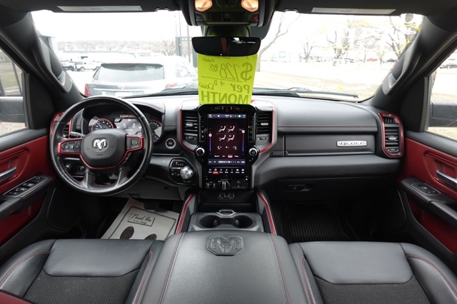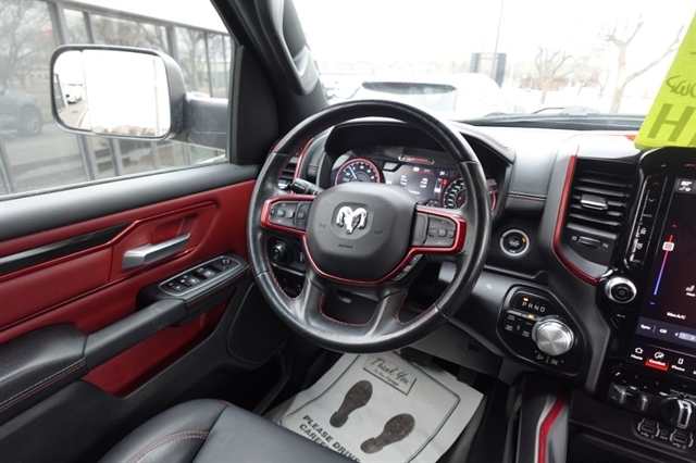 Check out this testosterone infused bad boy Ram Rebel just in, and this truck comes with several unique qualities and features that make this truck a must see to appreciate the value. The features on the Rebel that stand apart from all others include the the big and bold Ram logo on the grill and below that sits the toughened up and blacked out front bumper with tow hooks and skid plate. The other Rebel features include black head and tail light bezels, black body side trim, 18'' wheels. This Rebel comes equipped with the 5.7l Hemi that prodcues a super impressive 395hp and with the air suspension and Bilstein Shocks you should have no problems with your towing or hauling needs on the next weekend adventure. The options include Navigation, Rear View Camera, 12'' Touch Screen, Leather Seats, Heated Seats, Heated Steering Wheel, Tow Package, Spray in bedliner, Step Bars, Tonneau Cover, and a long list of Standard Power and Safety Features. We offer bank financing with excellent rates and terms right here at the dealership, stop and see why so many people will only purchase their used vehicles from Ideal Wheels with the original Ideal Advantage which provides no labor charge on most repairs for as long as you own the vehicle. Don't forget to check out the complimentary Carfax.