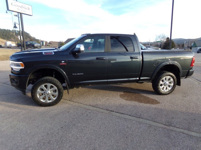 LOCATED AT GOODRICH MOTORS IN SPEARFISH, SD!! BEAUTIFUL LOCAL TRADE AND WELL EQUIPPED!! LARAMIE PACKAGE!! SPORT APPEARANCE PACKAGE!! 6.7 Liter Cummins Turbo Diesel, Automatic Transmission, Heated-Ventilated 8-Way Power Leather Driver and Passenger Front Seats, Heated Leather Wrapped Steering Wheel, Trailer Tow Package with Tow Technology Package, Surround View Camera System with Backup Camera-Trailer Hitch Guidance, Power Heated Folding Memory Trailer Tow Mirrors, Power Running Boards, Heated Power Sliding Rear Window, Alpine 9 Speaker Premium Sound System with Subwoofer, Apple CarPlay, Rain Sensing Wipers, 2nd Row In Floor Storage Bins, Tonneau Cover, Spray-In Bedliner, LED Bed Lighting Package, Skid Plate Package, Premium Laramie Alloy Wheels, Power Adjustable Pedals With Memory, Remote Start, Dual zone Automatic Climate Control Air Conditioning, Tilt-Telescopic Steering Column, Power Windows and Door locks, Roof Clearance Lights, and Much More!! VERY NICE!! NOW ONBLY $47,990.00!!