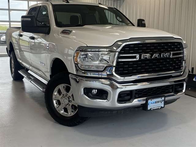 Fully detailed, 2 Way Rear Headrest Seat, 220 Amp Alternator, 2nd Row In Floor Storage Bins, 3.73 Axle Ratio, 4 Way Front Headrests, 4-Wheel Disc Brakes, 40/20/40 Split Bench Seat, 4G LTE Wi-Fi Hot Spot, 6 Speakers, 8.4`` Touchscreen Display, ABS brakes, Active Noise Control System, Air Conditioning, Anti-Spin Differential Rear Axle, Apple CarPlay, Auto Power-Folding Mirrors, Big Horn IP Badge, Black Exterior Mirrors, Bluetooth Handsfree Phone & Audio, Brake assist, Bumpers: chrome, Center Hub, Center Stack Storage Drawer, Chrome Flat Cab-Length Side Steps, Cloth 40/20/40 Bench Seat, Cold Weather Group, Compass, Connectivity - US/Canada, Delay-off headlights, Driver door bin, Dual front impact airbags, Dual front side impact airbags, Dual Glove Boxes, Electronic Stability Control, Electronically Controlled Throttle, Emergency communication system: SiriusXM Guardian, Engine Block Heater, Exterior Mirrors Courtesy Lamps, Exterior Mirrors w/Heating Element, Exterior Mirrors w/Supplemental Signals, Foam Bottle Insert (Door Trim Panel), Footwell Courtesy Lamp, For Details, Visit DriveUconnect.com, For More Info, Call 800-643-2112, Forward & Reverse Utility Lights, Front anti-roll bar, Front Armrest w/Cupholders, Front Center Armrest w/Storage, Front Center Seat Cushion Storage, Front Fog Lamps, Front License Plate Bracket, Front Performance Tuned Shock Absorbers, Front reading lights, Front Seat Back Map Pockets, Fully automatic headlights, Global Telematics Box Module (TBM), Glove Box Lamp, Google Android Auto, GPS Antenna Input, Heated door mirrors, Heavy Duty Snow Plow Prep Group, Hill Descent Control, Illuminated entry, Integrated Center Stack Radio, Integrated Voice Command w/Bluetooth, Leather Wrapped Steering Wheel, Level 1 Equipment Group, Locking Lower Glove Box, Low tire pressure warning, Manual Adjust 4-Way Driver Seat, Manual Adjust 4-Way Front Passenger Seat, Mirror Running Lights, MOPAR Spray In Bedliner, MOPAR Winter Front Grille Cover, Occupant sensing airbag, Off Road Package, Outside temperature display, Overhead airbag, Overhead console, Panic alarm, ParkSense Front/Rear Park Assist System, ParkView Rear Back-Up Camera, Passenger door bin, Passenger vanity mirror, Power 2-Way Driver Lumbar Adjust, Power Adjust 8-Way Driver Seat, Power Adjust Mirrors, Power Adjustable Convex Aux Mirrors, Power door mirrors, Power Heated Fold Telescope Mirrors, Power steering, Power Telescoping Mirrors, Power windows, Premium Cloth 40/20/40 Bench Seat, Premium Cloth 40/20/40 Bench Seat (DISC), Quick Order Package 2HZ Big Horn, Radio data system, Radio: Uconnect 3 w/5`` Display, Radio: Uconnect 5 W w/8.4`` Display, Radio: Uconnect 5 W w/8.4`` Display (A62), Rear 60/40 Folding Seat, Rear anti-roll bar, Rear Backup Alarm, Rear Dome w/On/Off Switch Lamp, Rear Folding Seat, Rear Performance Tuned Shock Absorbers, Rear seat center armrest, Rear step bumper, Rear Window Defroster, Remote keyless entry, Remote USB Port - Charge Only, Selectable Tire Fill Alert, SiriusXM Radio Service, SiriusXM Satellite Radio, Speed control, Steering Wheel Mounted Audio Controls, Storage Tray, Tachometer, Tilt steering wheel, Tip Start, Tow Hooks, Traction control, Trip computer, Turn signal indicator mirrors, Variably intermittent wipers, Voltmeter, Wheels: 18`` x 8.0`` Polished Aluminum, Wheels: 18`` x 8.0`` Steel Chrome Clad. 2024 Ram 2500 Big Horn 4WD 6-Speed Automatic Cummins 6.7L I6 Turbodiesel