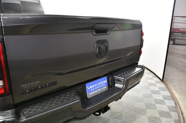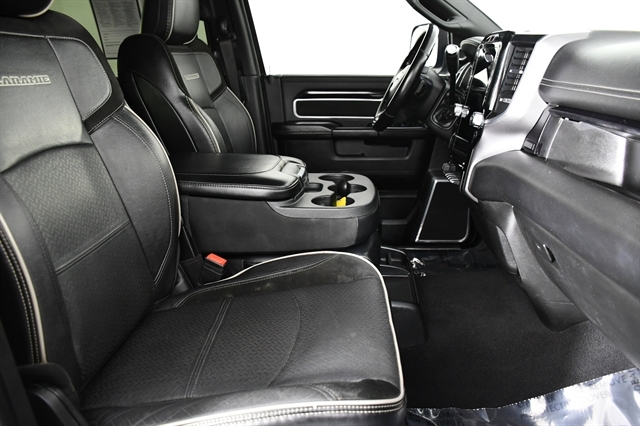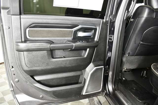 Check out the rest of the great features on this car! Laramie Level B Equipment Group (17 Speaker harman kardon Premium Sound, 2nd Row In Floor Storage Bins, 4G LTE Wi-Fi Hot Spot, 8.4 Touchscreen Display, Alexa Built-In, All R1 High Radios, All Radio Equipped Vehicles, Apple CarPlay, Auto High Beam Headlamp Control, Chrome Exterior Mirrors, Connected Travel & Traffic Services, Connectivity - US/Canada, Disassociated Touchscreen Display, Exterior Mirrors w/Memory, Foam Bottle Insert (Door Trim Panel), For Details Visit DriveUconnect.com, For More Info, Call 800-643-2112, Global Telematics Box Module (TBM), Google Android Auto, GPS Antenna Input, GPS Navigation, HD Radio, Heated Second Row Seats, Integrated Center Stack Radio, Integrated Voice Command w/Bluetooth, Mirror-Mounted Aux Reverse Lamps, Off-Road Information Pages, Power Adjustable Convex Aux Mirrors, Power Adjustable Pedals w/Memory, Power Chrome Tow Mirrors w/Convex Spotter & Memory, Radio: Uconnect 5 Nav w/8.4 Display, Radio/Driver Seat/Mirrors/Pedals Memory, Rain Sensitive Windshield Wipers, Remote Tailgate Release, Selectable Tire Fill Alert, SiriusXM Radio Service, SiriusXM Satellite Radio, SiriusXM w/360L, and Ventilated Front Seats), Night Edition (Black Exterior Mirrors, Black Exterior Truck Badging, Black Headlamp Bezels, Black Interior Accents, Black Ram Head Tailgate Badge, Black Tail Lamp Bezels, Black Wheel Center Hub, Body Color Door Handles, Body Color Grille Surround, Exterior Mirrors Courtesy Lamps, Exterior Mirrors w/Heating Element, Exterior Mirrors w/Supplemental Signals, Gloss Black Grille Billets/Accents, Mirror Running Lights, Painted Front Bumper, Painted Rear Bumper, Power Black Tow Mirrors w/Convex Spotter & Memory, and Power-Folding Mirrors), Quick Order Package 2HH Laramie, #1 Seat Foam Cushion, 10 Speakers, 115V Auxiliary Rear Power Outlet, 12 Touchscreen Display, 2 Way Rear Headrest Seat, 220 Amp Alternator, 3.73 Axle Ratio, 4 Way Front Headrests, 4-Wheel Disc Brakes, ABS brakes, Active Noise Control System, Adjustable pedals, Air Conditioning, Alloy wheels, AM/FM radio: SiriusXM, Apple CarPlay/Android Auto, Auto-dimming Rear-View mirror, Automatic temperature control, Bluetooth Handsfree Phone & Audio, Brake assist, Bumpers: chrome, Center Hub, Compass, Delay-off headlights, Driver door bin, Driver vanity mirror, Dual front impact airbags, Dual front side impact airbags, Electronic Stability Control, Electronically Controlled Throttle, Folding Flat Load Floor Storage, Front anti-roll bar, Front Bumper Sight Shields, Front Center Armrest w/Storage, Front dual zone A/C, Front fog lights, Front License Plate Bracket, Front reading lights, Front Seat Back Map Pockets, Fully automatic headlights, Garage door transmitter, Heated door mirrors, Heated Front Seats, Heated front seats, Heated Steering Wheel, Heated steering wheel, High Back Seats, Illuminated entry, Leather steering wheel, Leather Trim 40/20/40 Bench Seat, Low tire pressure warning, MOPAR Spray In Bedliner, Occupant sensing airbag, Outside temperature display, Overhead airbag, Overhead console, Panic alarm, ParkView Rear Back-Up Camera, Passenger door bin, Passenger vanity mirror, Power 8-Way Adjustable Passenger Seat, Power Adjust 8-Way Driver Seat, Power door mirrors, Power driver seat, Power passenger seat, Power steering, Power windows, Radio data system, Radio: Uconnect 5 Nav w/12.0 Display, Radio: Uconnect 5 w/8.4 Display, Rear 60/40 Folding Seat, Rear reading lights, Rear seat center armrest, Rear step bumper, Rear window defroster, Remote keyless entry, Security system, Speed control, Split folding rear seat, Steering wheel mounted audio controls, Tachometer, Tilt steering wheel, Tip Start, Traction control, Trip computer, Turn signal indicator mirrors, Variably intermittent wipers, Voltmeter