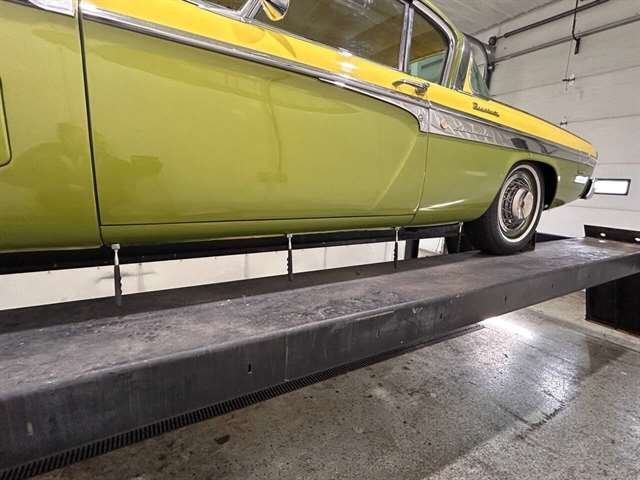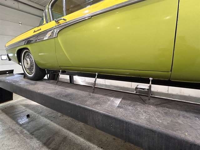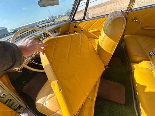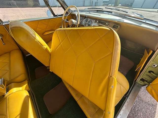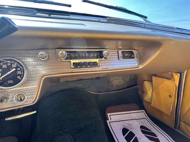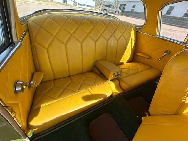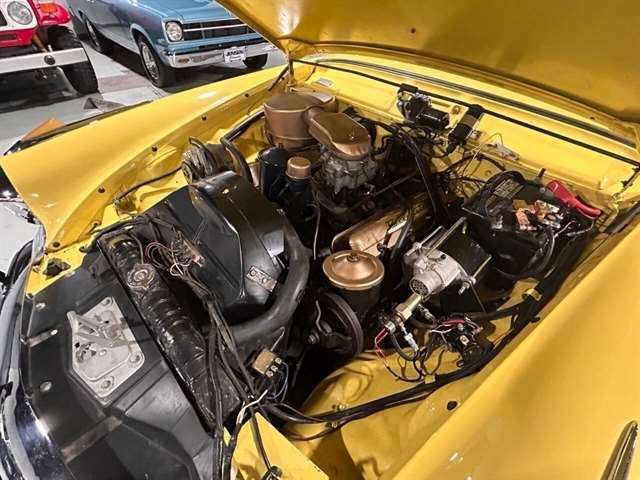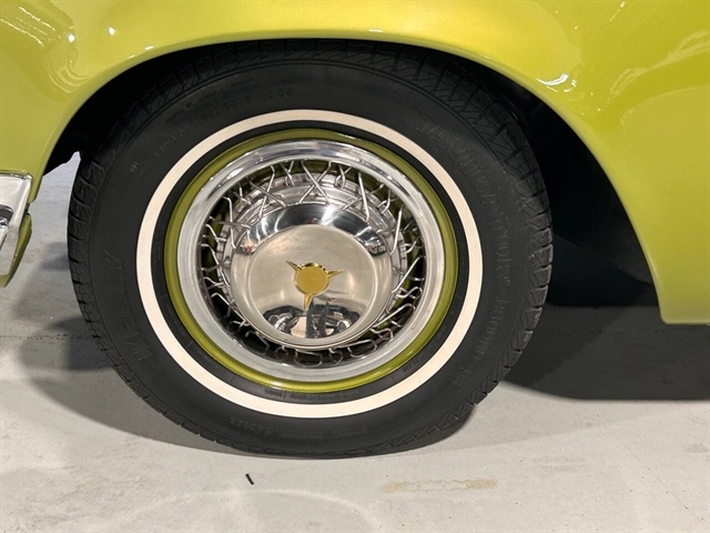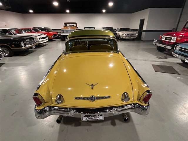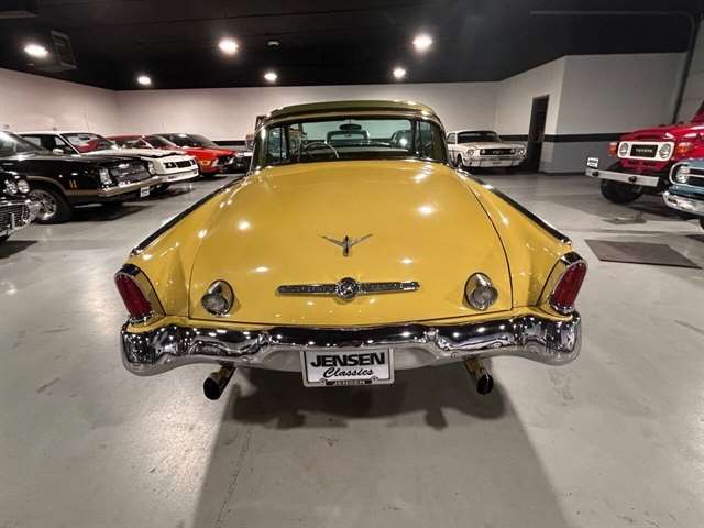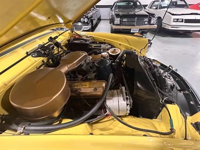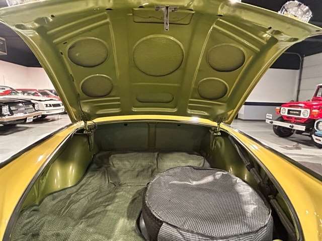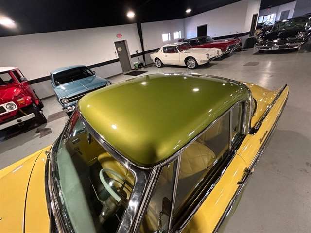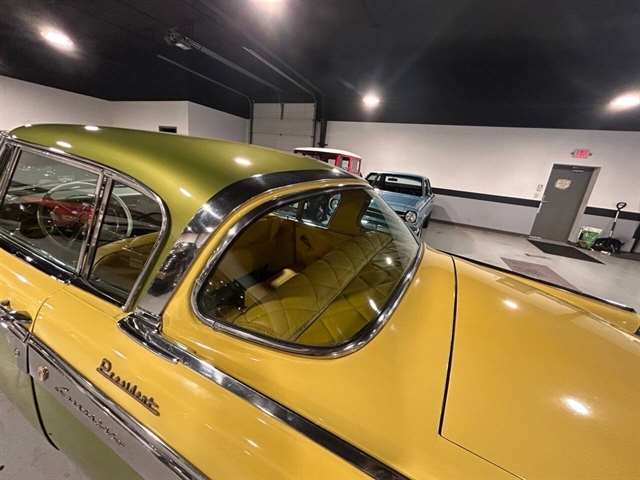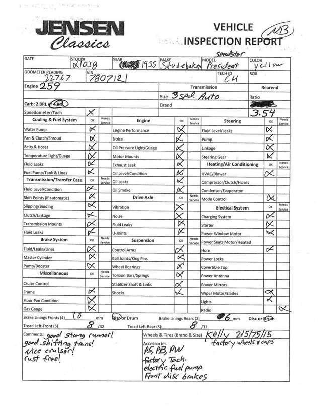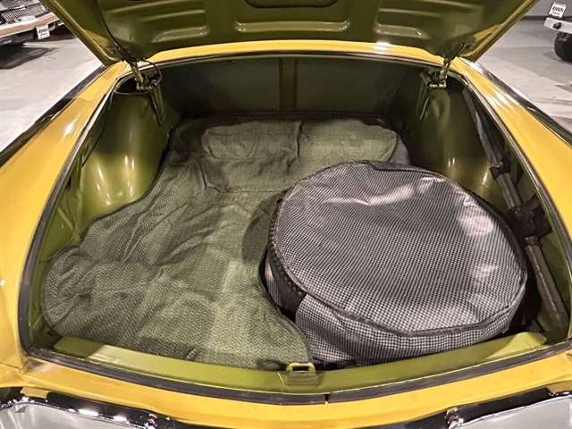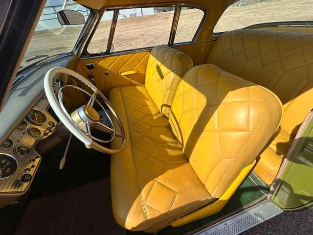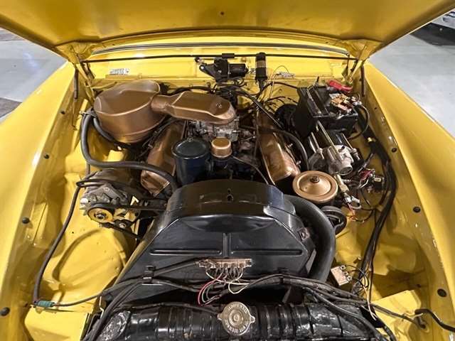1955 Studebaker President Speedster An initial run of 20 Speedsters was made to be displayed at car shows for the 1955 model year. Reaction to the show cars caused Studebaker’s management to put the car into production mid-year and offer it for the rest of the model year. The Speedsters were loaded with standard equipment, including choice of automatic transmission, or the overdrive transmission, power steering, power brakes, four-barrel carburetor, dual exhaust, “shoemaker-stitched“, quilted genuine top green leather seating, carpeting front and rear, map pocket, push button radio “machine turned “instrument panel with 160 mph speedometer and an 8000 RPM tachometer, turn signals, clock, tinted glass, cigarette lighter, oil filter, dual back up lamps, triple horns, two speed electric wipers, tubeless white wall tires, simulated wire wheel covers and fog light bumperettes. The Speedster presented here is an investment grade collectible, cosmetically and mechanically. It’s hard to find fault with this one-year offering. With the exception of the radio, it’s in turnkey condition. Car is amazing, powered by the venerable 259 V-8 with a four-barrel, automatic transmission, power steering, power brakes, power windows and more. Speedsters in 1955 also came in two and three tone paint jobs, the most famous of which was Hialeah Green and Sun Valley Yellow called lemon lime by the public, which is the example here.