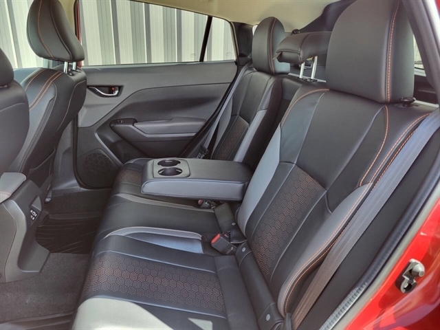 | BLACK W/ORANGE STITCHING LEATHER-TRIMMED UPHOLSTERY |