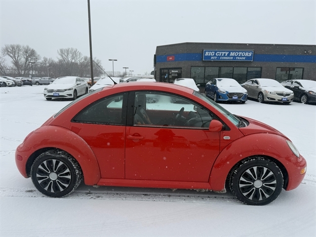 Step into the sunshine with this vibrant 2003 Volkswagen New Beetle Coupe in eye-catching orange! This zippy little car is powered by a 2.0L SOHC SMPI I4 engine, perfect for zipping around town with ease on its front-wheel drive. With features like front/rear coil springs and stabilizer bars, this Beetle offers a smooth and comfortable ride. Cruise through your day with the confidence of knowing that this Beetle comes with an available Carfax report. The interior offers comfort and convenience, with a full-folding rear bench seat, air conditioning with pollen/odor filter, and an AM/FM stereo with CD changer control. With features like illuminated glove box, front door storage nets, and integrated armrests, this Beetle has plenty of storage and comfort options for your daily drives. Safety is a top priority in this Beetle, with driver/front passenger airbags, side-impact airbags, and 3-point seat belts with front pretensioners and load limiters. Whether you`re cruising down the highway or zipping through city streets, this fun and peppy Beetle is ready to make every drive an adventure! Visit Big City Motors to shop our great deals. You can call 605-338-8001 to schedule your test drive today.