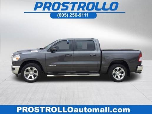 KBB.com 10 Favorite New-for-2019 Cars. Boasts 21 Highway MPG and 15 City MPG! This Ram 1500 delivers a Regular Unleaded V-8 5.7 L/345 engine powering this Automatic transmission. WHEELS: 20` X 9` ALUMINUM CHROME CLAD, TRANSMISSION: 8-SPEED AUTOMATIC (8HP75), TIRES: 275/55R20 ALL SEASON LRR. This Ram 1500 Features the Following Options QUICK ORDER PACKAGE 25Z BIG HORN/LONE STAR -inc: Engine: 5.7L V8 HEMI MDS VVT, Transmission: 8-Speed Automatic (8HP75), Steering Wheel Mounted Audio Controls , SINGLE DISC REMOTE CD PLAYER, REMOTE START SYSTEM, RADIO: UCONNECT 4 W/8.4` DISPLAY, MANUFACTURER`S STATEMENT OF ORIGIN, GVWR: 7,100 LBS, GRANITE CRYSTAL METALLIC CLEARCOAT, ENGINE: 5.7L V8 HEMI MDS VVT -inc: Active Noise Control System, 180 Amp Alternator, Heavy Duty Engine Cooling, GVWR: 7,100 lbs, Dual Rear Exhaust w/Bright Tips, Hemi Badge, DEPLOYABLE BED STEP, BLACK, DELUXE CLOTH BUCKET SEATS -inc: Power 8-Way Driver Seat, Center Console Parts Module, Bucket Seats, Manual Adjust 4-Way Front Passenger Seat, Full Length Floor Console, Power 4-Way Driver Lumbar Adjust. The Votes are Counted KBB.com 10 Best Road Trip Cars, KBB.com Best Auto Tech Awards, NACTOY 2019 North American Truck of the Year, KBB.com 10 Favorite New-for-2019 Cars. Stop By Today For a must-own Ram 1500 come see us at Prostrollo Auto Plaza Co., 1001 S Washington, Madison, SD 57042. Just minutes away!