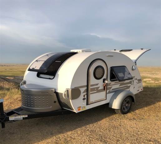 Fun teardrop with rear clamshell kitchen, gently used with only 3,800 miles - Includes Renogy solar suitcase 100 watt-12 volt with Voyager converter, Deadbolt trailer lock & extra featherbed mattress. This classic model has AC & a Yeti 35 cooler. Trade your tent for this easy camping experience. It's been a blast, but this solo traveler finds she's just not using it as much as she'd hoped!
