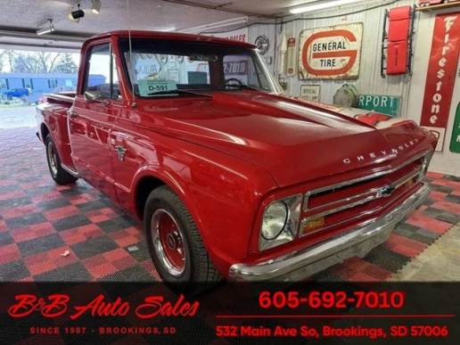 *350 ZZ4 CRATE ENGINE*AUTOMATIC*SHORT BOX*New Classic ACThis Chevy Short box is one cool truck and drives as good as it looks. With the lowered stance and stepside box a great look. I would call the paint in the show quality range as it has a great shine, with only a few chips on the box sides from the previous owner out driving it. They have been touched up and barely noticeable. Don`t worry about rust as this truck came from from out west, Utah & Montana and I don`t see any issues on the exterior or underneath. As you can see in the pictures the interior has been restored and has no issues. We work on and drive these vehicles as we have added new classic AC to it. I have drove this truck around 40 miles and runs great with the ZZ4 engine and drives as good. I have videos of a walk around, running and driving so contact me to see how nice this truck is, Dirk @ 605-695-7391. Located in White,SDBUY WITH CONFIDENCE as this 1967 Chevrolet C-10 has gone thru inspection and test drive. We personally work and drive these ourselves so can answer any questions you may have. We show you any issues with over 100 pictures and videos of a walk around, running and driving.VALUE- We price our vehicles to market value and try to be one of the best prices of vehicles in comparable condition. Our goal is to give you a good buy on a vehicle you are going to have fun with and enjoy. We do have a document fee but only $50 which is lower than most other dealers.LIKE IT OR RETURN IT- As being in business for 37 years we do not want to sell anybody a vehicle they do not want. As many of our vehicles are sold site unseen we will take the vehicle back and give a refund minus shipping and a restocking fee. You are responsible for the shipping both ways and a $1000 restocking fee. You have 3 days to notify us you are not happy with the vehicle and we will start the return process. Ask for more details.VIDEOS- Call, text or email for videos of driving the vehicle and of the engine running and accessories working. Text Dirk at 605-695-7391. Click here to apply for financing: Credit App Call or text Dirk at 605-695-7391 or Darren 605-695-9555 with any questions. B and B Auto Sales, 324 W Main White,SD 57276