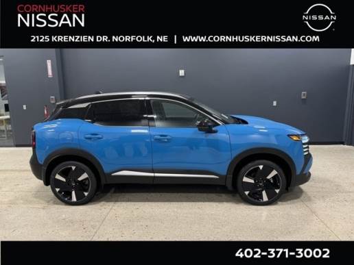 Bold, efficient, and versatile --- meet the *2025 Nissan Kicks SR AWD* in eye-catching Arctic Ice Blue Metallic/Super Black. With all-wheel drive, this compact sport-utility balances spirited performance and sure-footed traction for our Nebraska roads. It features sleek exterior styling like LED projector headlights with automatic high beams, deep-tinted glass, a lip spoiler, heated side mirrors with integrated turn signals, and stylish 17-inch alloy wheels. Inside, you'll enjoy a premium cabin highlighted by Sport cloth/leatherette trim, automatic air conditioning, a 12.3-inch touchscreen display, smart device integration, and ample conveniences like power windows, proximity key with push-button start, and a full suite of safety tech including Intelligent Blind Spot Intervention, Lane Departure Warning, Forward Collision Mitigation, Aerial View Camera System, Rear-Cross Traffic Alert, and more. With city/highway fuel economy rated at *27/34 MPG*, the Kicks SR is great for daily commutes or exploring the countryside.Stop by *Cornhusker Nissan, 2125 Krenzien Dr., Norfolk, NE 68701* to take the Kicks SR AWD for a test drive and see why this one stands out.