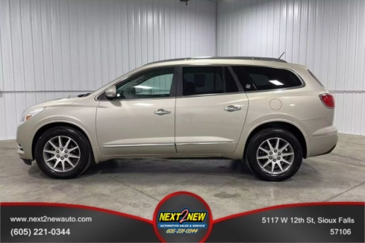 IF YOU`RE LOOKING FOR A LARGE, COMFORTABLE LUXURY-CROSSOVER SUV WITH A PROVEN RECORD, AN ADULT-FRIENDLY 3RD-ROW SEAT AND A COMFORTABLE RIDE, THIS SEVEN PASSENGER 2017 BUICK ENCLAVE LEATHER SPORT UTILITY DESERVERS YOUR ATTENTION AND ALSO A TEST DRIVE! AS WITH ALL OF OUR VEHICLES, THIS VEHICLE HAS BEEN THROUGH A THOROUGH INSPECTION, ALL FLUIDS CHECKED FOR RELIABILITY, ALL TIRES INSPECTED FOR WEAR AND RECOMMENDED INFLATION. IF NEEDED, TIRES HAVE BEEN REPLACED. WE ALSO DO A VERY THOROUGH DETAILING OF OUR VEHICLE TO ENSURE IT SHINES LIKE YOUR FAMILY DOES.WHAT`S KEEPING YOU FROM COMING ON DOWN AND TAKING ADVANTAGE OF OUR OUTSTANDING AND FRIENDLY STAFF? A PLACE WHERE YOU WILL FEEL WARM AND WELCOME. WE DON`T JUST SELL CARS TO CUSTOMERS, YOU BECOME ONE OF THE NEXT2NEW FAMILY. YOU CAN ALSO TAKE ADVANTAGE OF OUR FULL SERVICE AND DETAIL SHOPS FOR ALL YOUR DIRTY JOBS.WE CAN FIX YOU UP, CLEAN YOU UP AND HAVE YOU FEELING LIKE YOU`RE DRIVING A WHOLE NEW CAR. WE LOOK FORWARD TO YOUR VISIT AND GETTING YOU ON THE ROAD WITH A SMILE ON YOUR FACE. STOP BY AND TAKE THIS VEHICLE FOR A TEST DRIVE. CALL US AT 605-221-0344 WITH ANY QUESTIONS YOU HAVE. -- TRADES WELCOME -- FINANCING & EXTENDED SERVICE CONTRACTS AVAILABLE -- SHOP NEXT-2-NEW WHERE YOUR NEXT CAR MAY NOT BE NEW PRICE, BUT WILL BE NEXT2NEW CONDITION!!! OPEN 7 DAYS A WEEK.