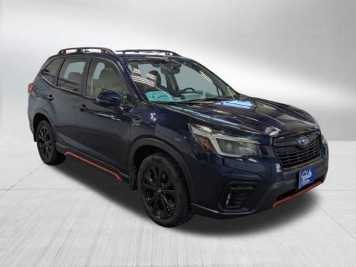 Dark Blue Pearl exterior and Gray interior. Heated Seats, Sunroof, AUDIO SYSTEM & REVERSE AUTO BRAKE & P... Alloy Wheels, Panoramic Roof, Remote Engine Start.KEY FEATURES INCLUDESunroof, Panoramic Roof, Heated Driver Seat, Aluminum Wheels, Remote Engine Start Subaru Sport with Dark Blue Pearl exterior and Gray interior features a 4 Cylinder Engine with 182 HP at 5800 RPM*.OPTION PACKAGESReverse Automatic Braking System (RAB), Power Rear Gate w/Automatic Close & Height Memory, automatic close and height memory, harman/kardon 576W Amp & Speaker System, 9 speakers, Radio: Subaru Starlink 8.0 Multimedia Plus System, AM/FM stereo HD Radio w/single-disc CD player w/MP3/WMA/CRR/RW file capability, multi-touch gesture high resolution display, 8.0 LCD screen, voice activated controls, Bluetooth® audio streaming connectivity, hands-free phone connectivity and hands-free SMS text messaging connectivity, Near Field Communication (NFC), iPod control capability, rear-vision camera display, SiriusXM All Access radio and Travel Link (subscription required), smartphone integration: AHA, Android Auto®, CarPlay and Pandora, Starlink cloud applications: refer to subaru.com for app.EXCELLENT VALUEThis Forester is priced $1,900 below J.D. Power Retail.BUY WITH CONFIDENCECARFAX 1-OwnerPricing analysis performed on 3/19/2025. Horsepower calculations based on trim engine configuration. Please confirm the accuracy of the included equipment by calling us prior to purchase.Horsepower calculations based on trim engine configuration. Fuel economy calculations based on original manufacturer data for trim engine configuration. Please confirm the accuracy of the included equipment by calling us prior to purchase.