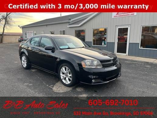BUY WITH CONFIDENCE with warranty, inspection and a good price. This 2013 Avenger has a 12 month/12,000 mile Comprehensive warranty & 160 point inspection for a piece of mind purchase. It is market priced compared to the competition and a very good value. Sun/sound Group ($1,540 value)Power Express Open/close SunroofUconnect 730N CD/DVD/MP3/HDD/navigation RadioQuick Order Package 27LMECHANICAL- This Avenger has been through our 160 point inspection.*Oil Change*Alignment*Heater Core*Front and Rear Struts*Valve Cover Gasket*Vapor Canister Purge Solenoid12 Month/12,000 Mile Comprehensive Warranty. Ask for detailsCall Dirk or Ryan with any questions at 605-692-7010.B and B Auto Sales, 532 Main Ave So Brookings SD 57006