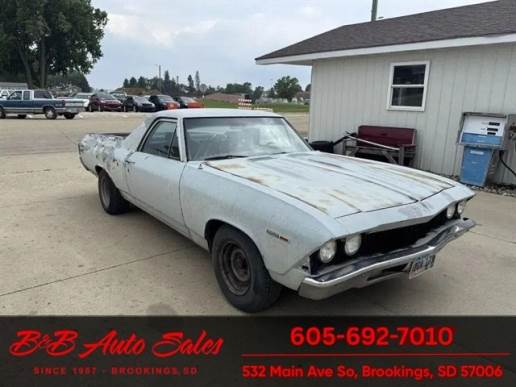 Do you like restoring classics? This is a nice solid El Camino with a 350 V8 , automatic and a AC car. A good solid body that is mostly complete except heater controls and AC compressor & lines Not a rust free but definitely not a rust bucket as you can see by the pictures that is has minimal rust issues. It will need the interior restored but parts are readily available. A great winter project that will be fun to work on. I have drove the car on the highway around 5 miles so drive as you restore. Located in White,SDVALUE- We price our vehicles to market value and try to be one of the best prices of vehicles in comparable condition. Our goal is to give you a good buy on a vehicle you are going to have fun with and enjoy. We do have a document fee but only $50 which is lower than most other dealers.LIKE IT OR RETURN IT- As being in business for 38 years we do not want to sell anybody a vehicle they do not want. As many of our vehicles are sold site unseen we will take the vehicle back and give a refund minus shipping and a restocking fee. You are responsible for the shipping both ways and a $1000 restocking fee. You have 3 days to notify us you are not happy with the vehicle and we will start the return process. Ask for more details.VIDEOS- Call, text or email for videos of driving the vehicle and of the engine running and accessories working. Text Dirk at 605-695-7391.Call or text Dirk at 605-695-7391 or Darren 605-695-9555 with any questions. B and B Auto Sales, 324 W Main White,SD 57276