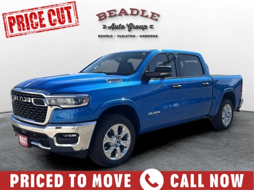 Visit Beadle Ford & Chrysler Center in Bowdle, SD to test drive this 2025 RAM 1500 Big Horn Crew Cab 4x4. Call 605-285-6202 to schedule your visit. We proudly serve customers from Aberdeen, SD, Bismarck, ND, and Pierre, SD — all less than two hours away. Discover RAM’s unmatched power and luxury at Beadle Ford & Chrysler Center.