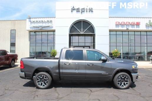 Laramie Level 2 Equipment Group (14.4`` Touchscreen Display, 4G LTE Wi-Fi Hot Spot, Apple CarPlay, Cluster 12`` TFT Color Display, Connected Travel & Traffic Services, Connectivity - US/Canada, Disassociated Touchscreen Display, Dual Wireless Charging Pad, Front Passenger Interactive Display, Global Telematics Box Module (TBM), Google Android Auto, GPS Antenna Input, GPS Navigation, harman/kardon 19 Speaker Premium Sound, HD Radio, Integrated Center Stack Radio, Integrated Voice Command w/Bluetooth, Power Tailgate, Radio: Uconnect 5 Nav w/14.4`` Display, Rain Sensitive Windshield Wipers, Secondary Active Grille Shutters, SiriusXM Radio Service, SiriusXM w/360L, Smartphone As A Key Capable, and USB Host Flip), Quick Order Package 21H Laramie, 10 Speakers, 3.55 Rear Axle Ratio, 4-Wheel Disc Brakes, ABS brakes, Air Conditioning, Alloy wheels, AM/FM radio: SiriusXM with 360L, Anti-Spin Differential Rear Axle, Apple CarPlay/Android Auto, Audio memory, Auto High-beam Headlights, Auto Power-Folding Mirrors, Auto-dimming door mirrors, Auto-Dimming Exterior Driver Mirror, Auto-dimming Rear-View mirror, Automatic temperature control, Brake assist, Bumpers: chrome, Chrome Exterior Mirrors, Compass, Convex Wide-Angle Exterior Mirror Insert, Delay-off headlights, Driver door bin, Driver vanity mirror, Dual front impact airbags, Dual front side impact airbags, Electronic Stability Control, Exterior Mirrors Courtesy Lamps, Exterior Mirrors w/Heating Element, Exterior Mirrors w/Memory, Exterior Mirrors w/Supplemental Signals, Front anti-roll bar, Front Bucket Seats, Front Center Armrest w/Storage, Front dual zone A/C, Front fog lights, Front reading lights, Front wheel independent suspension, Fully automatic headlights, Garage door transmitter, Heated door mirrors, Heated front seats, Heated rear seats, Heated steering wheel, Illuminated entry, Leather steering wheel, Leather Trimmed Bucket Seats, Low tire pressure warning, Manufacturer`s Statement of Origin, Memory seat, Navigation System, Occupant sensing airbag, Off-Road Information Pages, Outside temperature display, Overhead airbag, Overhead console, Panic alarm, ParkView Rear Back-Up Camera, Passenger door bin, Passenger vanity mirror, Power door mirrors, Power driver seat, Power passenger seat, Power steering, Power windows, Radio data system, Radio: Uconnect 5 Nav w/12.0`` Display, RAM Grille Badge - Chrome, Rear anti-roll bar, Rear reading lights, Rear seat center armrest, Rear step bumper, Remote keyless entry, Security system, Speed control, Split folding rear seat, Steering wheel mounted audio controls, Tachometer, Telescoping steering wheel, Tilt steering wheel, Traction control, Trailer Brake Control, Trip computer, Turn signal indicator mirrors, Variably intermittent wipers, Ventilated front seats, Voltmeter, and Wheels: 20`` x 9`` Premium Paint/Polish.