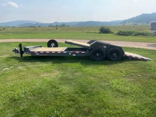 Description2026 Midsota TB22 Bumper Pull Tiltbed, 6ft stationary deck and 16ft lockable tilt bed, 83 inches wide and 22ft long, Tandem 7000lb spring axles with electric brakes at all 4 wheels, 235/80R16 tires and wheels, A-Frame steel toolbox and Spare tire and mount. |