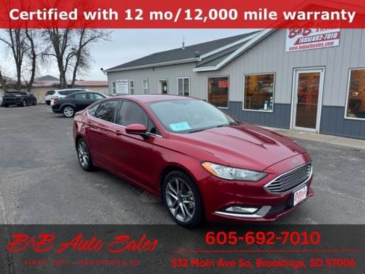 Vehicle Details 2017 Ford Fusion SE — located in Brookings, SD — offers reliable performance, efficient fuel economy and smart features at the best price. Powered by a 2.0L 4-cylinder gasoline engine with front-wheel drive, this Ford Fusion delivers a balanced blend of responsiveness and everyday efficiency for commuting or weekend travel. The CARFAX Clean Report confirms its well-maintained history for added confidence. Inside, Automatic Climate Control keeps the cabin comfortable no matter the season, while convenient Hands-Free Bluetooth lets you stream music and take calls safely on the road. XM Radio provides expanded entertainment options for long drives, and Rear Parking Sensors assist with confident maneuvering in tight spots. The cabin's thoughtfully designed layout and quality materials create a comfortable environment for driver and passengers. Equipped with an efficient automatic transmission and a suite of practical features, this Ford Fusion SE is an excellent value for drivers seeking a dependable midsize sedan. Regular maintenance and the clean vehicle history contribute to peace of mind and ownership satisfaction. Located in Brookings, SD, this vehicle is competitively priced to move quickly — offering the best price for its condition and features. Contact us to schedule a test drive and experience the balance of comfort, technology and value in this 2017 Ford Fusion SE.
