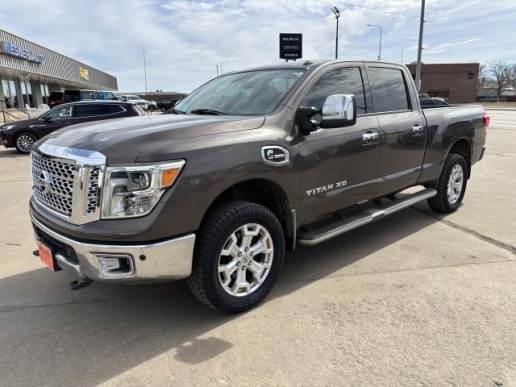 2016 Nissan Titan XD SL 4WD with 5.0L V8 Diesel — Located in Pierre, SD. This rugged, well-maintained pickup delivers heavy-duty capability with refined comfort. The turbocharged 5.0L V8 diesel provides strong towing and hauling performance while the 4WD system offers confident traction for work or recreation in South Dakota conditions. Finished with premium SL features, this Nissan Titan XD includes factory navigation for easy route planning, XM Radio for extended entertainment options, and Hands Free Bluetooth for safe, connected driving.