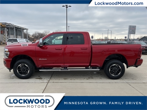 Packages Quick Order Package 2UH Laramie. Laramie Level 1 Plus Equipment Group: Center Stop Lamp with Cargo View Camera; Rain Sensitive Windshield Wipers; Power Adjustable Pedals with Memory; LED Bed Lighting; Traffic Sign Recognition; Auto Power-Folding Mirrors; Adaptive Steering System; Exterior Mirrors with Heating Element; Auto Dim Exterior Mirror; Anti-Spin Differential Rear Axle; Drowsy Driver Detection; Mirror Running Lights; MOPAR Deployable Bed Step; Foam Bottle Insert (door Trim Panel); Power-Adjustable Convex Aux Mirrors; Active Lane Management System; Forward and Reverse Utility Lights; Leather Trimmed Bucket Seats; Power Heated Fold Telescopic Mirrors with Memory; Exterior Mirrors with Supplemental Signals; Exterior Mirrors Courtesy Lamps; MOPAR Spray in Bedliner; Remote Tailgate Release; Auto High Beam Headlamp Control; Chrome Exterior Mirrors; Exterior Mirrors with Memory; Power Adjust Mirrors; 2nd Row in Floor Storage Bins; Power Telescoping Mirrors; Auto Dim Exterior Passenger Mirror; Auto Adjust in Reverse Exterior Mirrors. Chrome Flat Wheel-To-wheel Side Steps. 5th Wheel/gooseneck Towing Prep Group. Leather Trimmed Bucket Seats. Center Stop Lamp with Cargo View Camera. Molten Red Pearlcoat. MyFlexCare Service Plan. Transfer Case Skid Plate Shield. **Equipment listed is based on original vehicle build and subject to change. Please confirm the accuracy of the included equipment by calling the dealer prior to purchase.**