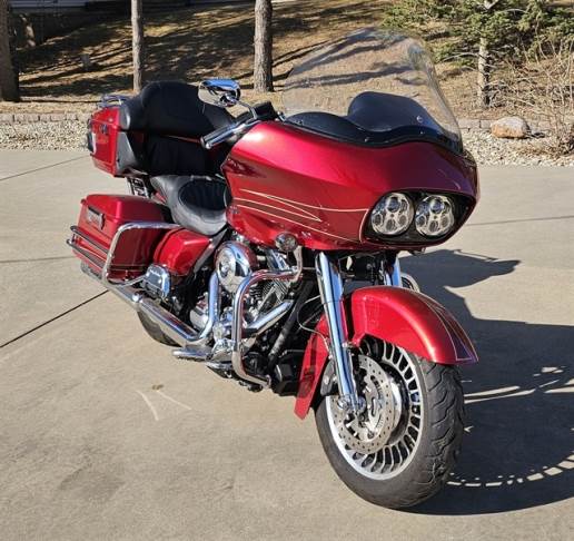 Here is a super clean and well maintained 2013 Road Glide Ultra with Ember Red Sunglo paint and graphics. The 103 Engine is setup with Stage I and has low miles at 25,576. Screaming Eagle slip-ons provide a nice low rumble as well. All factory suspension has been replaced with Legends. Chrome fork tubes were also installed at that time. Ten inch bars by Drag Specialties and a Corbin seat provide for a very comfortable ride. I also upgraded the Compensator to Screaming Eagle in 2024. Dunlop tires have 7200 miles. Windshield is by Klockwerks. Factory lowers are included as well as the twin antennas. Other options include anti-lock brakes, cruise control, and alarm system with two fobs. Lighting has been upgraded to LED with an additional light bar installed on the tour pack for visibility. The first owner upgraded the stereo and speakers to HOGTUNES with bluetooth capability. This bike has always been well maintained and garaged. I am the second owner and have a clean title. Will post this at $12,000.00 and will consider respectable offers. This is located in Sioux Falls, SD. Let me know if you have any questions or need additional pics.