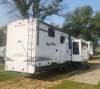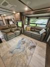 Four Seasons WeatherTech Artic Insulation Weather Protection. 5 Slides. 41' Long. Full and 1/2 Bath. Dual Sink Vanity in Full Bath. Separate Front Living Area. Dual opposing Tri-fold Sofa's. Theatre Seats with Heat, massage, & Recline. 36" Electric Fireplace. TV that raises up out of stand. Kitchen Island. Stainless Steel 4 Door Refrigerator. Large Pantry with Slide out drawers. Walk Through bedroom with King Size Bed. Central Vacuum. Washer/Dryer Combo(never used), 6 point automatic leveling system, 2 outside awnings. Control camper from controls on phone. 3 Air Conditioners. Moride 5th wheel hitch and slide out tray under camper. This is a luxury camper for extended stay or snow bird campers. Gently used and well kept and clean. Must see. Not used in 2025. Willing to deliver and set up.
