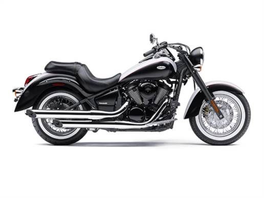 2013 Kawasaki Vulcan® 900 ClassicIt`s called classic for a reason: it draws its styling cues from days when everyone who was anyone had a muscle car, 8-tracks pumped the tunes out and a low-slung motorcycle turned heads. With its distinctive two-tone Special Edition pearl flat stardust white and flat ebony paint scheme and whitewall tires, the Vulcan® 900 Classic is definitely one bike to get noticed on, with its spoked wheels, low-slung seat and dual slash-cut mufflers.